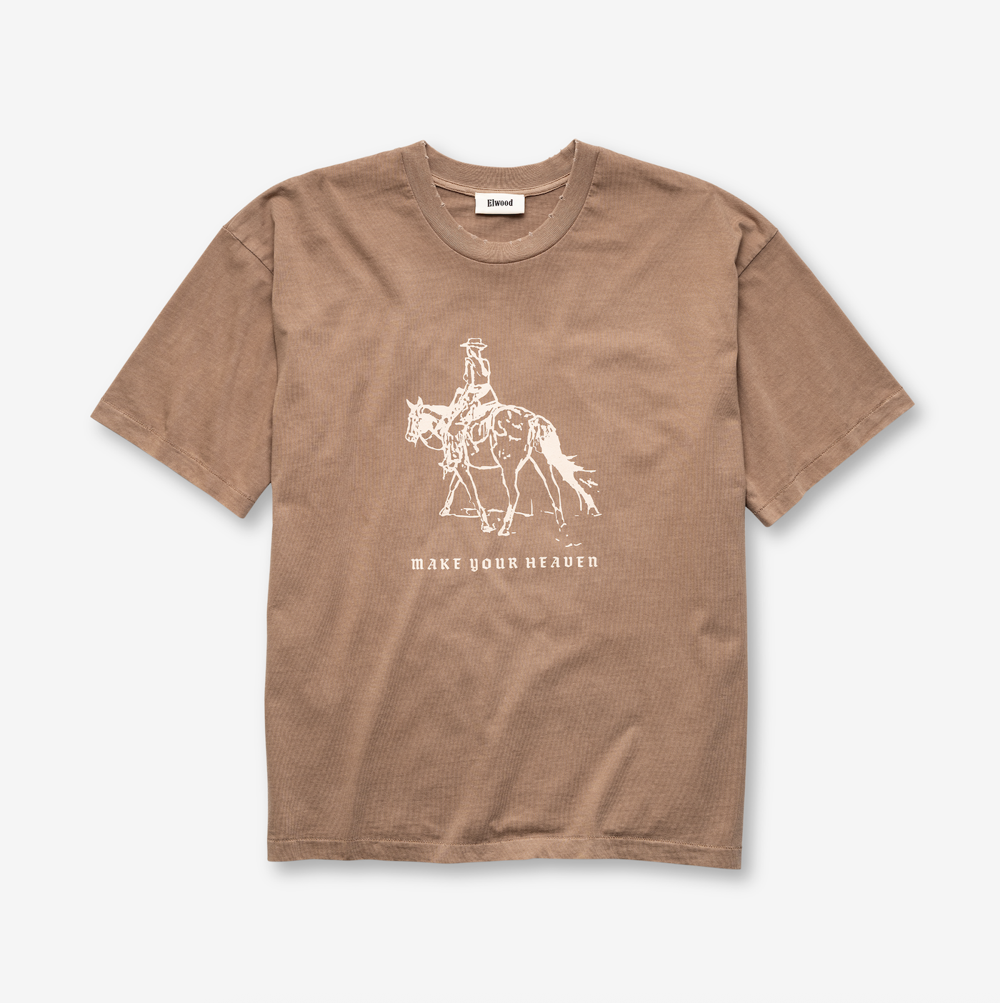 The collaboration features three vintage-inspired tees and a series of signed art prints, each designed and selected by Liljestrom himself. Printed in the USA on 6 oz organic jersey cotton, the tees are garment-washed, hand-distressed, and built to fade and soften over time — wearable canvases that tell their own evolving story. Each graphic — Golden Rule, Smoke Break, and Dream Big — nods to the artist’s ongoing exploration of modern mythmaking: small acts of grace, work, and wonder rendered through a Western gaze.